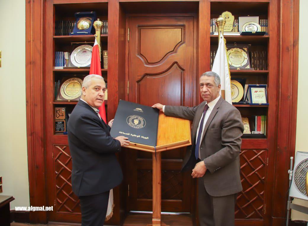حضر اللقاء الكاتب الصحفى علاء ثابت وكيل الهيئة والمستشار عادل بريك المستشار القانوني للهيئة والأستاذ حمدي رزق عضو الهيئة والمستشار مدحت لاشين المستشار القانوني لرئيس الهيئة والأستاذ وليد عبد العزيز عضو الهيئة السابق