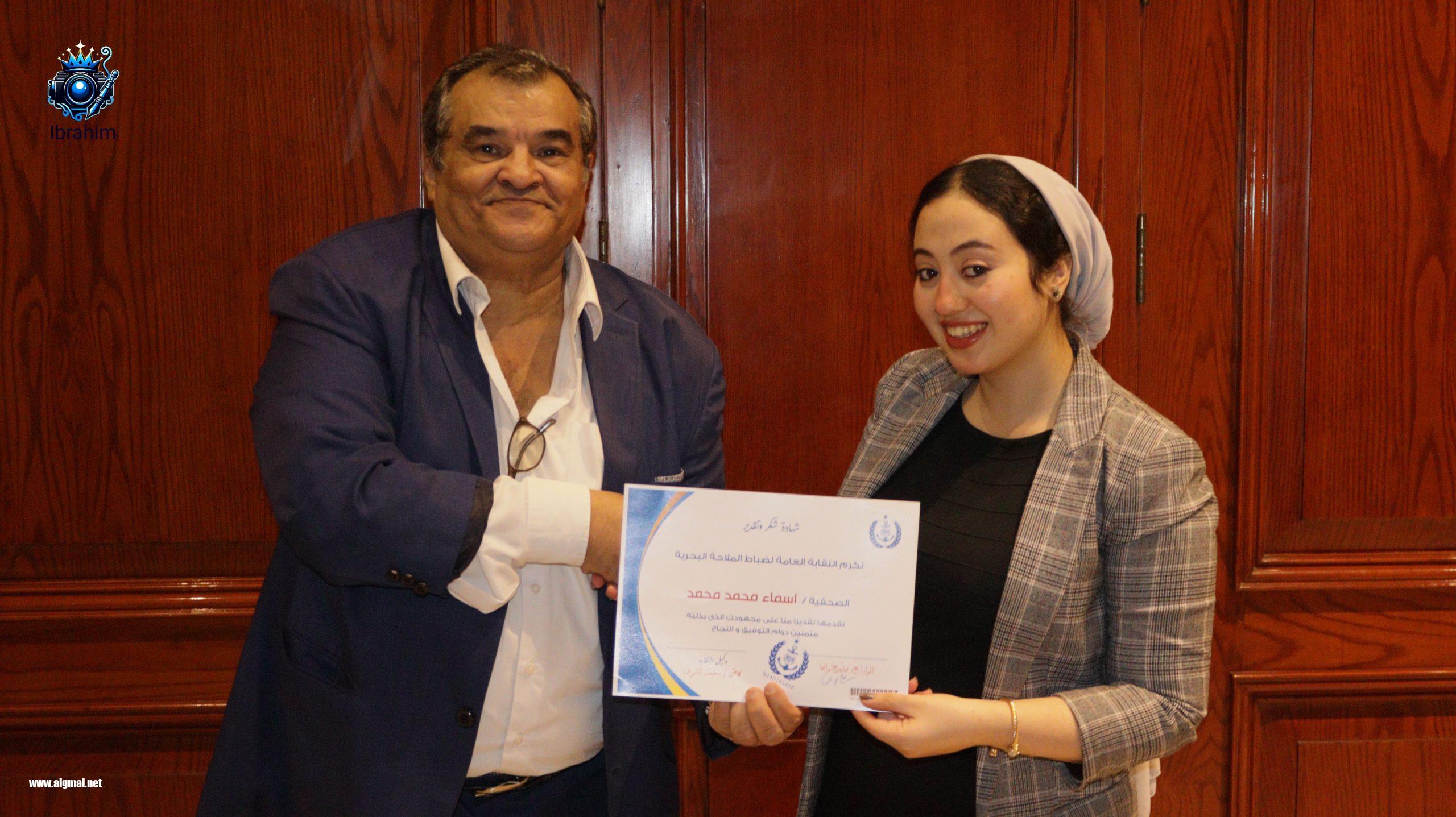 3.  النقابة العامة للملاحة البحرية تكرم الاعلامية أسماء محمد