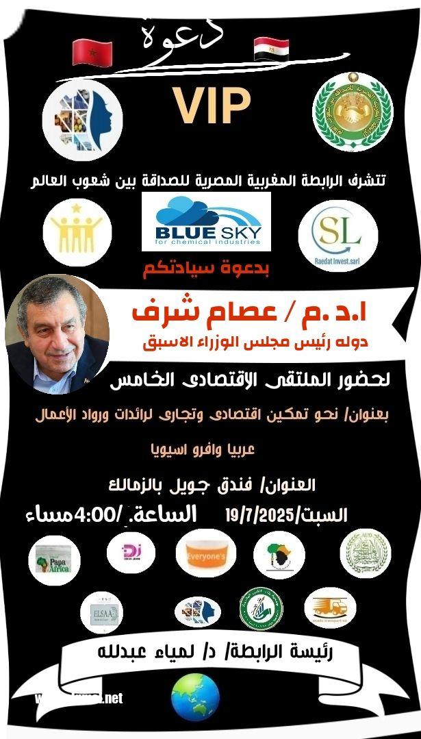 وسعيا لنجاح الملتقى .. دعت الرابطة المغربية المصرية جميع الهيئات الاقتصادية، والمستثمرين، والمهتمين بالشأن العربي الإفريقي إلى المشاركة الفاعلة في هذا الملتقى الذى يسعى لبناء مستقبل اقتصادي قوى .