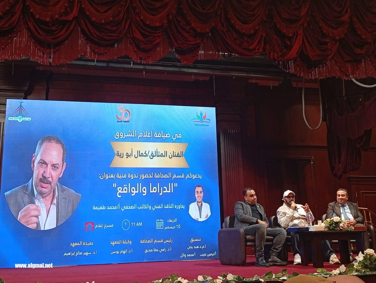 موهبتي فضل من ربنا… والمسرح عشقي الأول": تصريحات قوية لكمال أبو رية في ندوة بالمعهد الدولي للإعلام