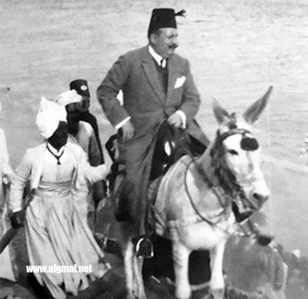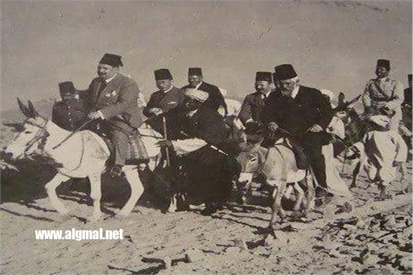 وفى صورة نادرة  للملك فؤاد الأول كان يقوم ببعض الزيارات الرسمية  على ظهر حمار.