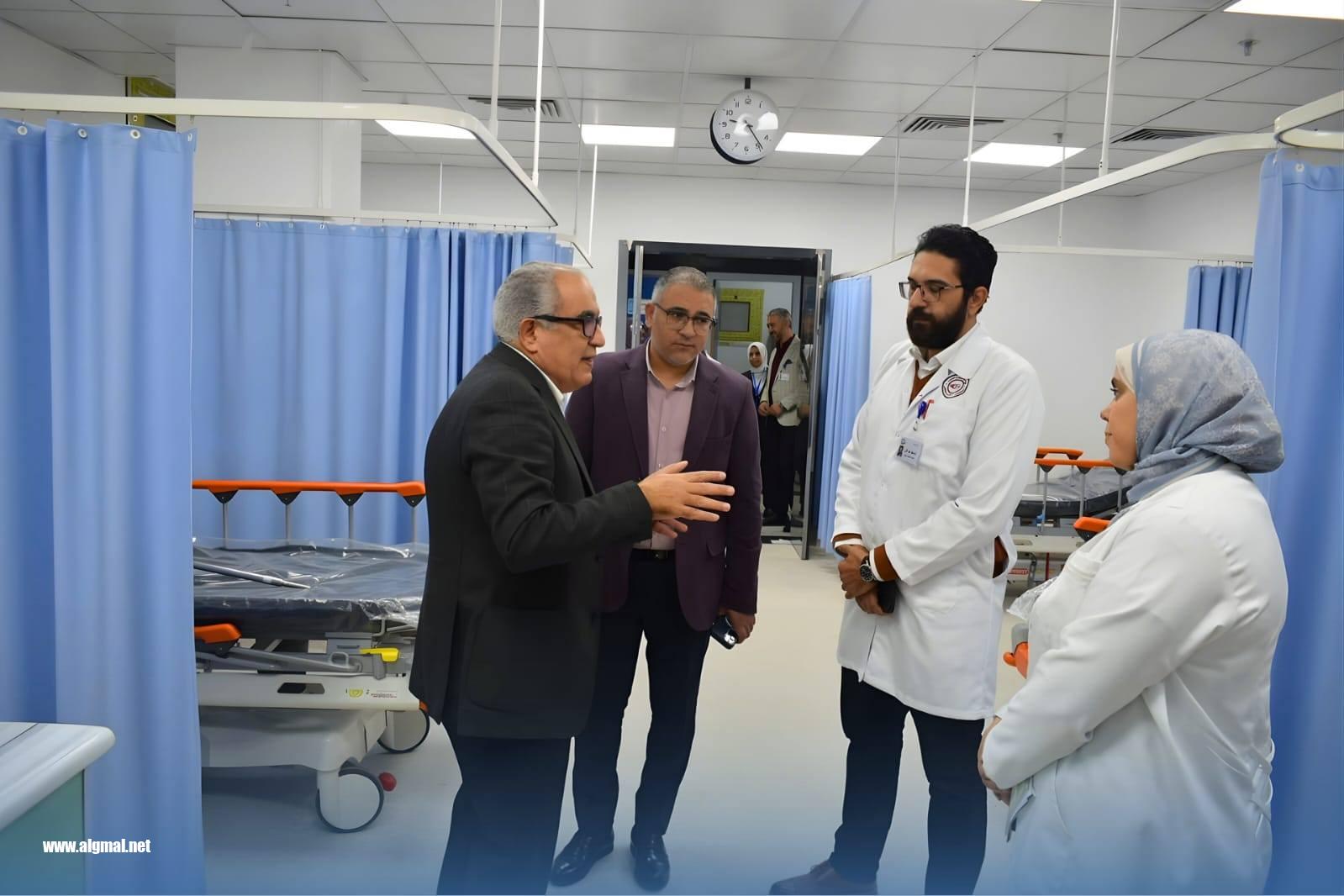 شملت الزيارة، تفقد غرف الملاحظة، والفرز، وحدة المناظير، قسم الأشعة، العمليات، المعمل والصيدليات، داخل المبنى الجديد.