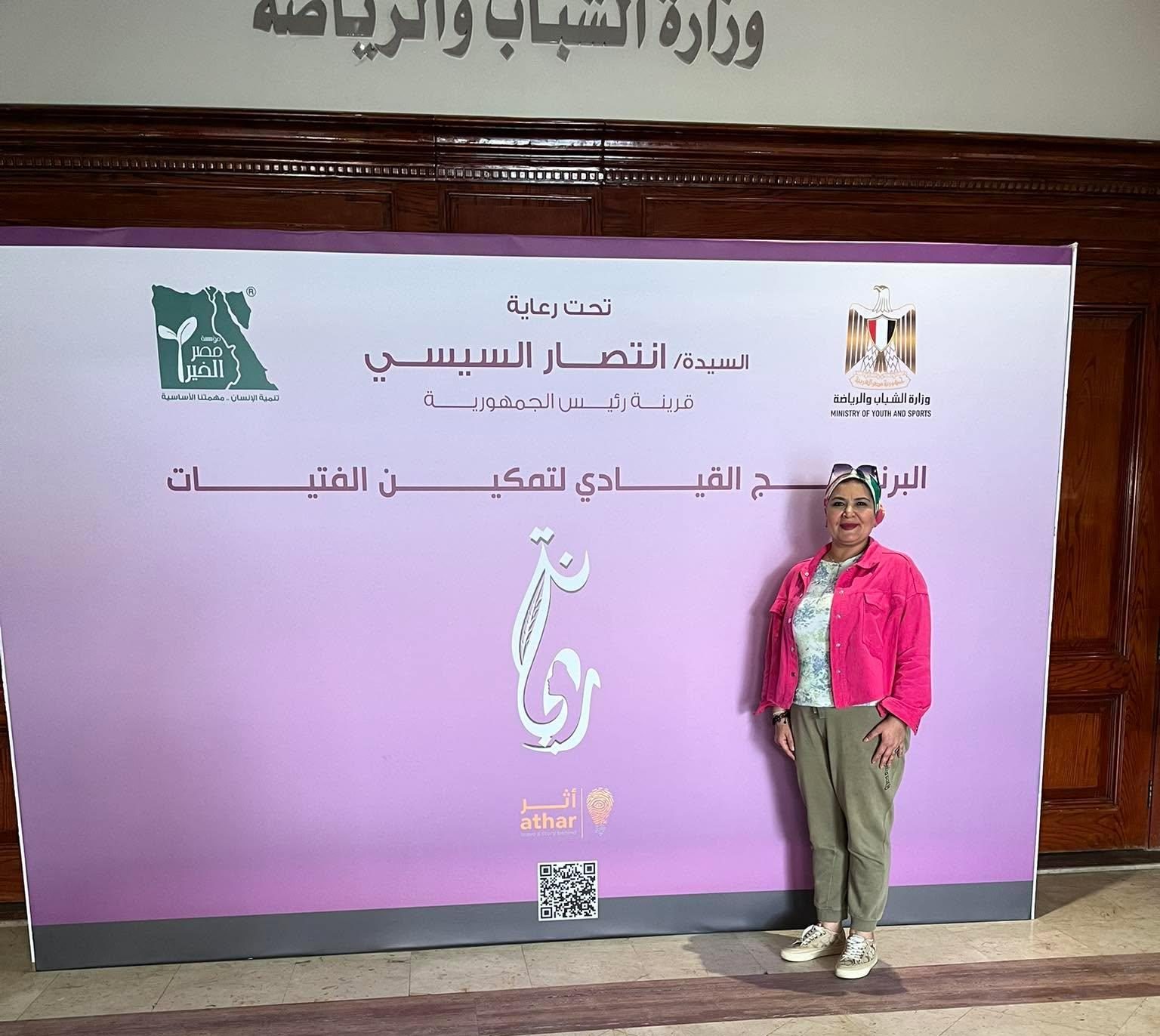 كما شاركت مؤخرا بالبرنامج القيادي لتمكين الفتيات الذي أقيم برعاية السيدة «أنتصار السيسي» قرينة فخامة رئيس الجمهورية